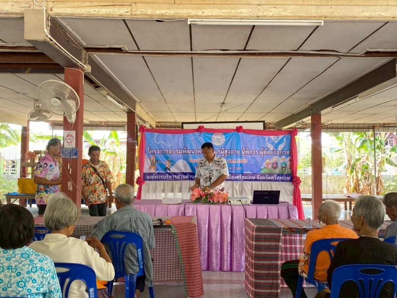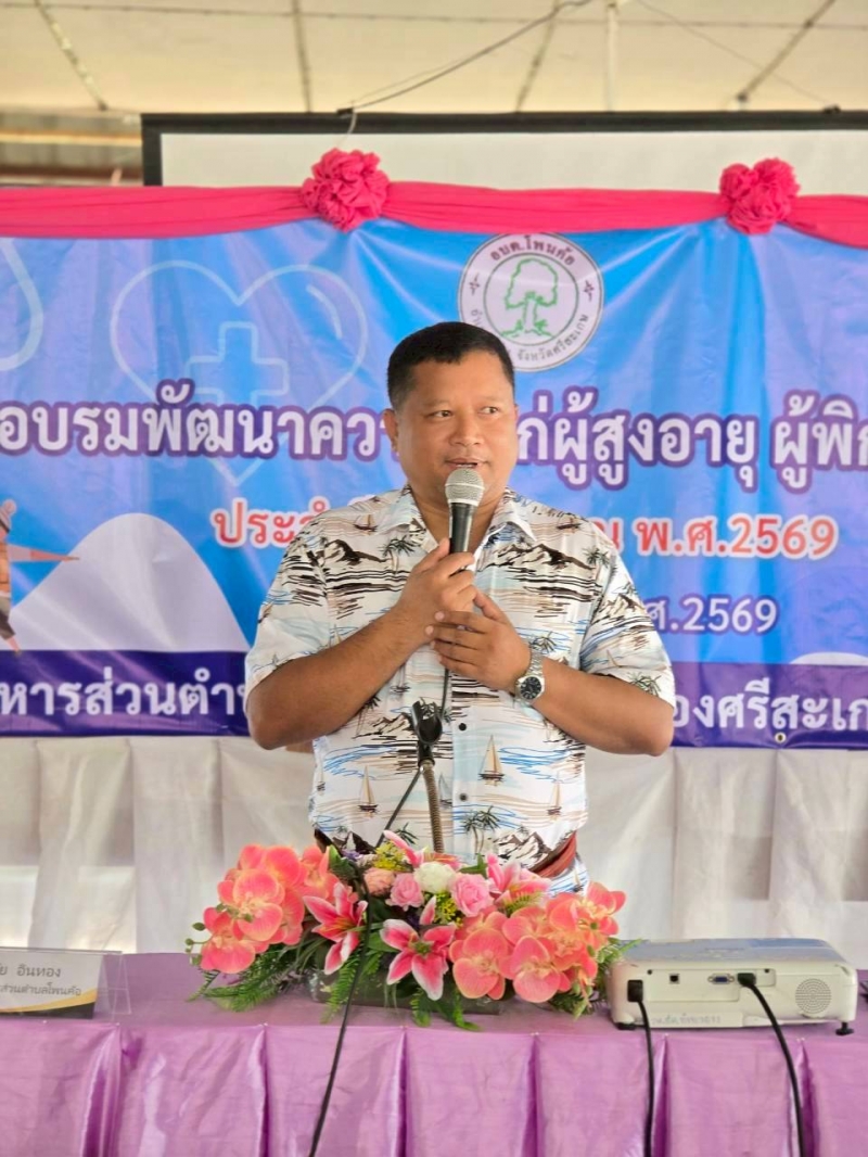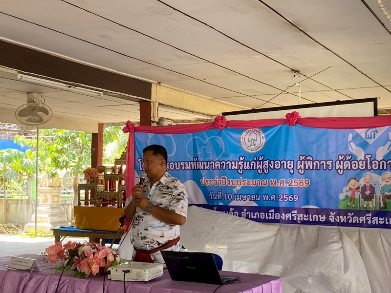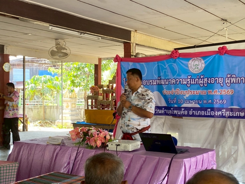 วันศุกร์ ที่ 10 เมษายน 2569 เวลา 09.00 น. องค์การบริหารส่วนตำบลโพนค้อ โดย นายพิชิตชัย อินทอง นายกองค์การบริหารส่วนตำบลโพนค้อ ฝ่ายบริหาร ฝ่ายสภาฯ ข้าราชการ ครู พนักงานส่วนตำบล พนักงานจ้าง ลูกจ้าง องค์การบริหารส่วนตำบลโพนค้อ ร่วมกับ กำนัน ผู้ใหญ่บ้าน ผู้นำชุมชน ประชาชน เข้าร่วมโครงการอบรมพัฒนาความรู้แก่ผู้สูงอายุ ผู้พิการ ผู้ด้อยโอกาส ซึ่ง ได้รับเกียรติจาก บุคลากรจาก รพ.สต.บ้านกลาง เป็นวิทยากรให้ความรู้แก่ผู้เข้าร่วมอบรมฯ ณ บริเวณ วัดบ้านโพนค้อ ตำบลโพนค้อ อำเภอเมืองศรีสะเกษ จังหวัดศรีสะเกษ