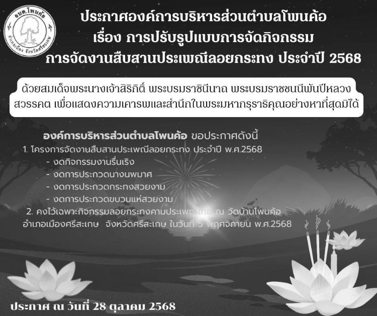 องค์การบริหารส่วนตำบลโพนค้อ อำเภอเมืองศรีสะเกษ จังหวัดศรีสะเกษ : www.phonkho.go.th