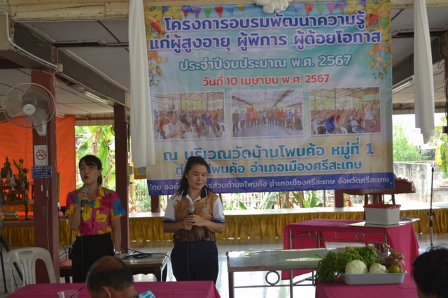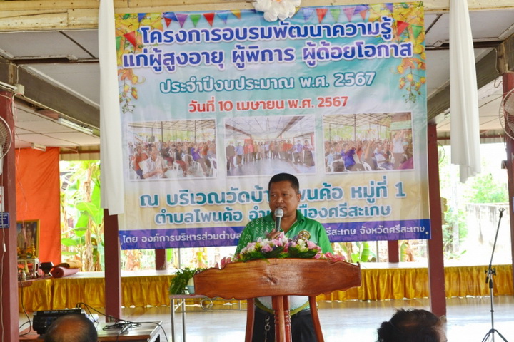 วันพุธที่ 10 เมษายน 2567 เวลา 08.30 น. องค์การบริหารส่วนตำบลโพนค้อ โดยนายพิชิตชัย อินทอง นายกองค์การบริหารส่วนตำบลโพนค้อ ได้จัดโครงการอบรมพัฒนาความรู้ แก่ผู้สูงอายุ ผู้พิการ ผู้ด้อยโอกาส ประจำปีงบประมาณ พ.ศ. 2567 โดยมีเจ้าหน้าที่จากโรงพยาบาลส่งเสริมสุขภาพตำบลบ้านกลาง ให้เกียรติมาเป็นวิทยากรในครั้งนี้ ระหว่างการอบรม มีกิจกรรมมากมาย ให้ผู้สูงอายุ ผู้พิการ และผู้ด้อยโอกาส ได้มีส่วนร่วม ณ บริเวณวัดบ้านโพนค้อ ตำบลโพนค้อ อำเภอเมืองศรีสะเกษ จังหวัดศรีสะเกษ