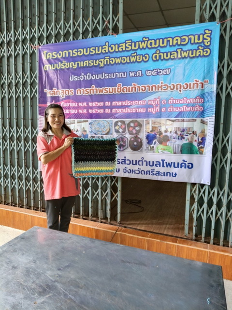 วันอังคารที่ 3 กันยายน 2567 องค์การบริหารส่วนตำบลโพนค้อ โดยนายพิชิตชัย อินทอง นายกองค์การบริหารส่วนตำบลโพนค้อ ได้ดำเนินโครงการ อบรมส่งเสริมพัฒนาความรู้ตามปรัชญาเศรษฐกิจพอเพียงตำบลโพนค้อ โดยการส่งเสริมอาชีพการทำพรมเช็ดเท้าจากห่วงถุงเท้าให้กับผู้เข้าร่วมการฝึกอบรม ณ ศาลาประชาคมหมู่ที่ 3 ตำบลโพนค้อ อำเภอเมืองศรีสะเกษ จังหวัดศรีสะเกษ