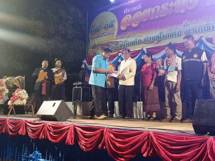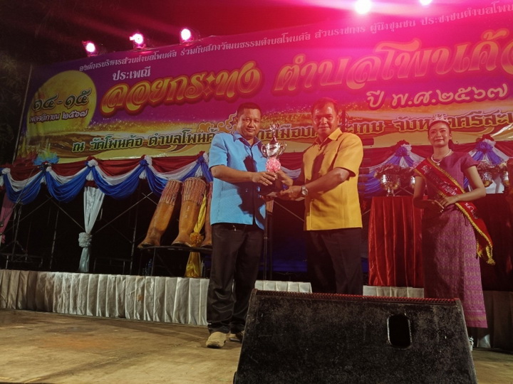 วันพฤหัสบดีที่ 14 - วันศุกร์ที่ 15 พฤศจิกายน 2567 องค์การบริหารส่วนตำบลโพนค้อ โดยนายพิชิตชัย อินทอง นายกองค์การบริหารส่วนตำบลโพนค้อ คณะผู้บริหาร ฝ่ายสภาองค์การบริหารส่วนตำบลโพนค้อ หัวหน้าส่วนราชการ พนักงานส่วนตำบล ผู้นำหมู่บ้าน และประชาชนตำบลโพนค้อ ได้ร่วมโครงการสืบสานประเพณีลอยกระทง ประจำปี พ.ศ.2567 เพื่อส่งเสริม อนุรักษ์ วัฒนธรรม จารีตประเพณีท้องถิน และสร้างจิตสำนึก ค่านิยมความเป็นไทย และภาคภูมิใจในวัฒนธรรมและขนบธรรมเนียมประเพณีไทยอันดีงามต่อไปสู่เยาวชนรุ่นหลัง ณ วัดบ้านโพนค้อ ตำบลโพนค้อ อำเภอเมืองศรีสะเกษ จังหวัดศรีสะเกษ
